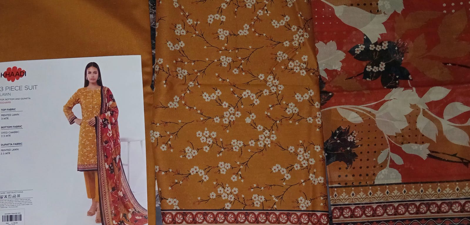 Fabric: High-Thread Count Luxury Lawn (Shirt), Lightweight Soft Printed Voile (Dupatta), Cotton Cambric (Trouser).