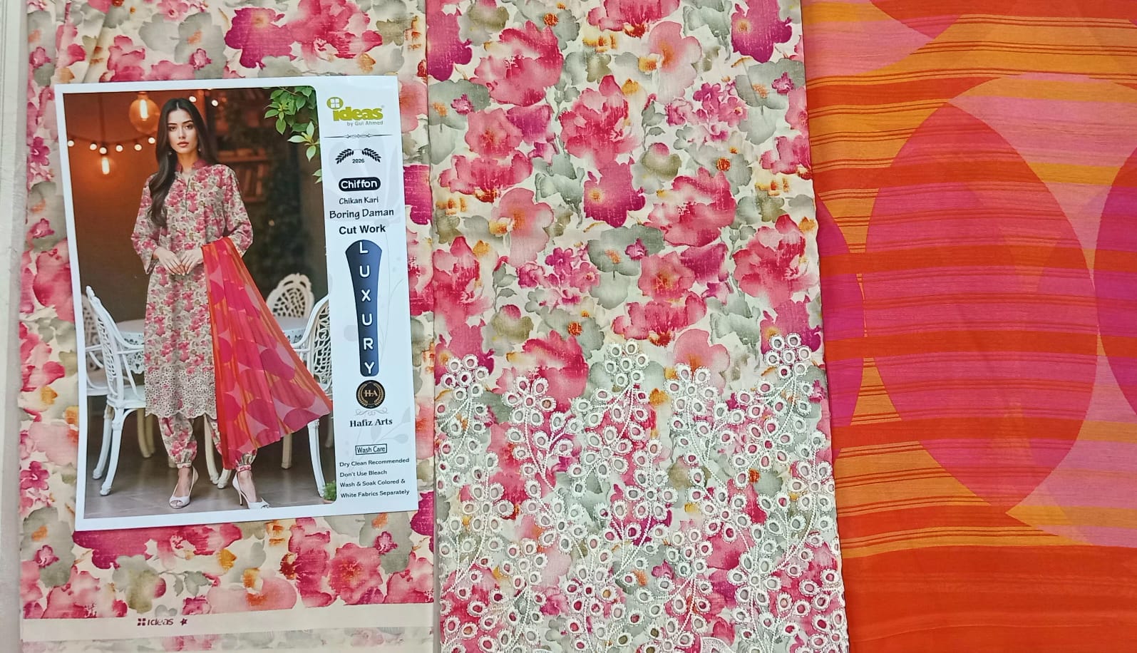 Fabric: Luxury Grade Summer Lawn (Shirt & Trouser), Lightweight Printed Chiffon/Silk Blend (Dupatta).