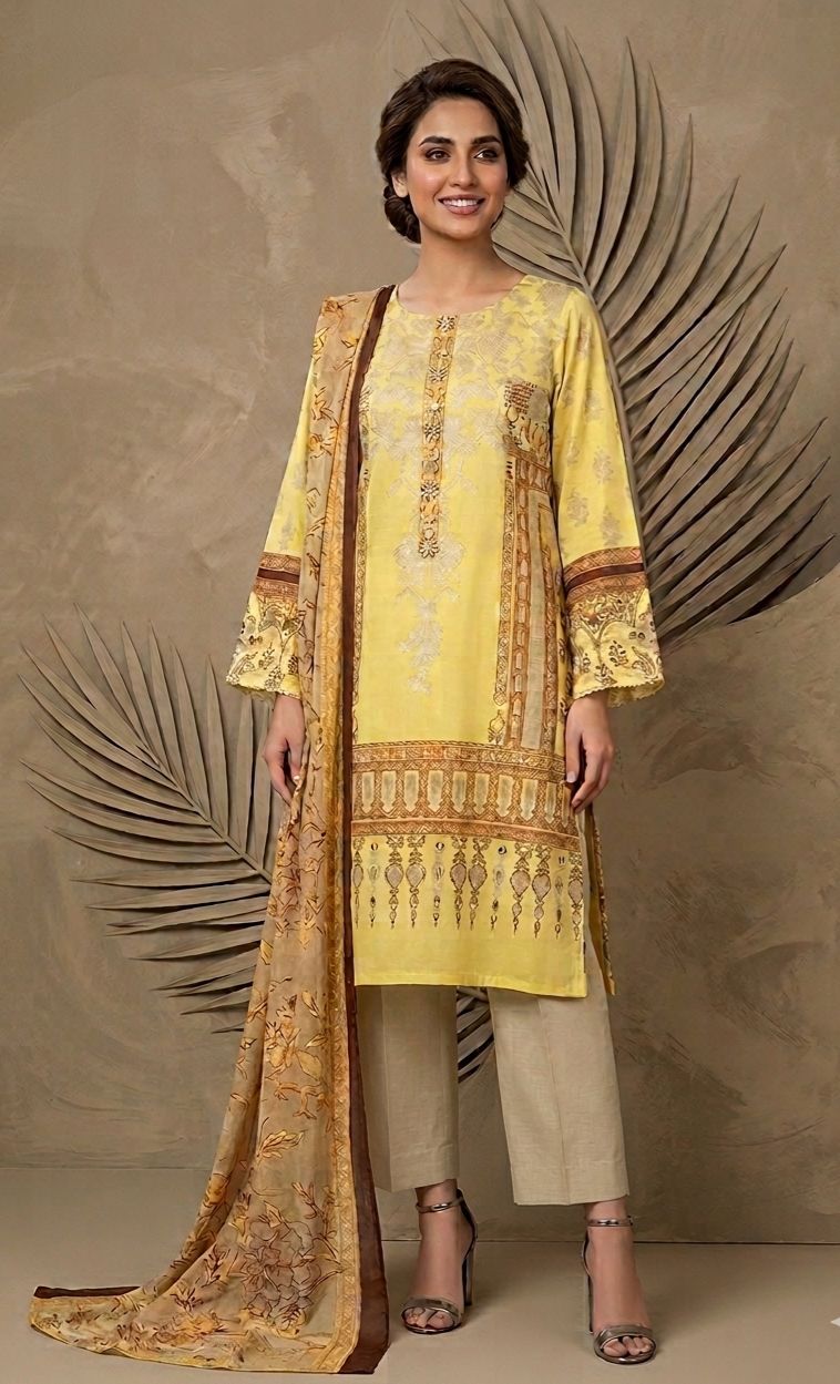 Fabric: High-Grade Luxury Lawn (Shirt), Lightweight Printed Voile (Dupatta), Soft Cotton Cambric (Trouser).