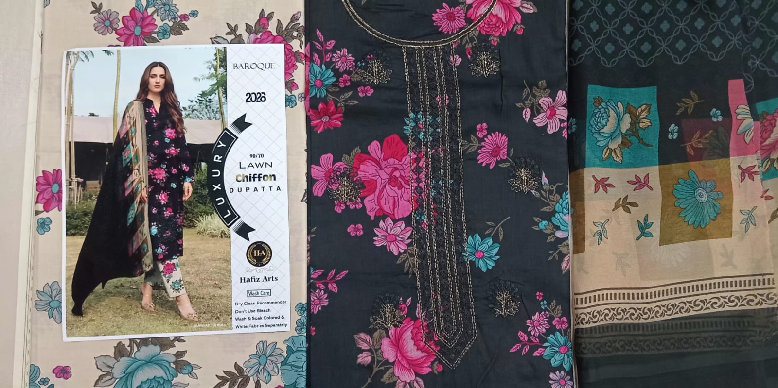 Fabric: Premium Grade Summer Lawn (Shirt & Trouser), Soft Printed Monark/Chiffon (Dupatta).
